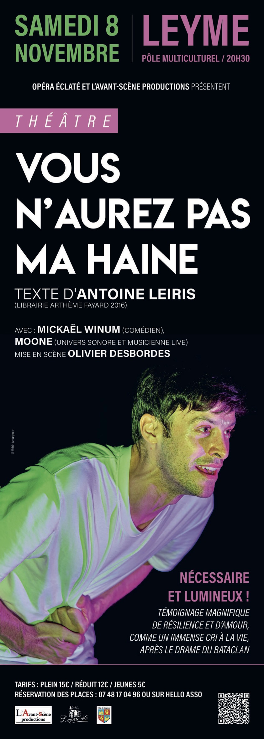 Avec l’autorisation de l’auteur Antoine Leiris et des Editions Fayard, le texte sera représenté dans son intégralité.